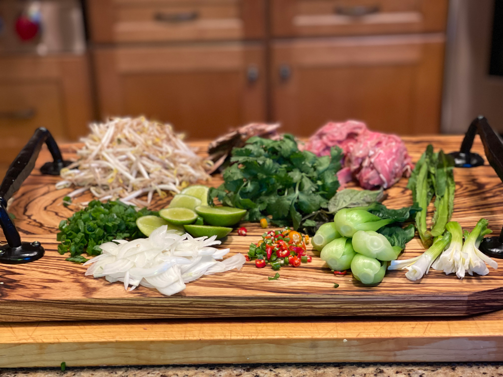 - Combine noodles, meat, and broth in a bowl (in that order).