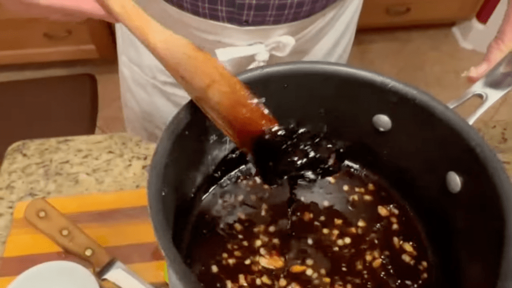 - Heat the mixture to combine and smoothen the flavors. Allow it to cool in the freezer for 10 minutes to avoid poaching the chicken.
