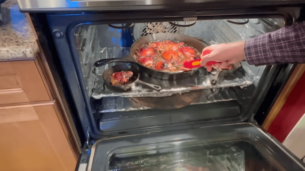 - Optional: Around the 40-minute mark, use a meat thermometer to check the chicken’s temperature. It should read at least 165 degrees Fahrenheit (74 degrees Celsius).