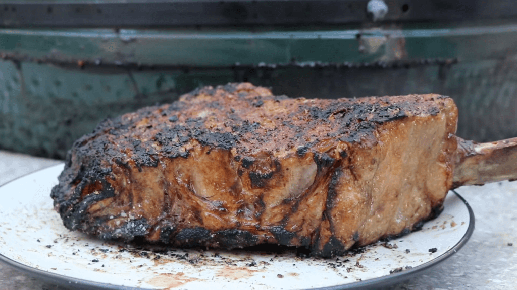 - Place the seasoned tomahawk steak on the grill over direct heat. Allow the steak to cook, flipping it occasionally, until it develops a nice sear and char on the outside. This can take around 4-5 minutes per side.