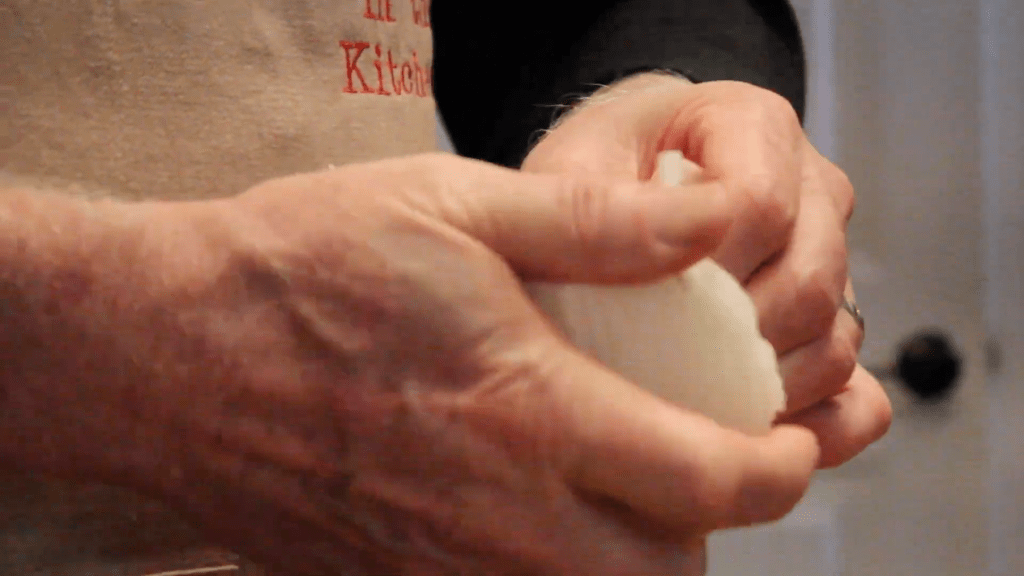 Cut both ends off the onions and then chop them in half. Peel off the paper skin and remove the first layer of the onion skin.