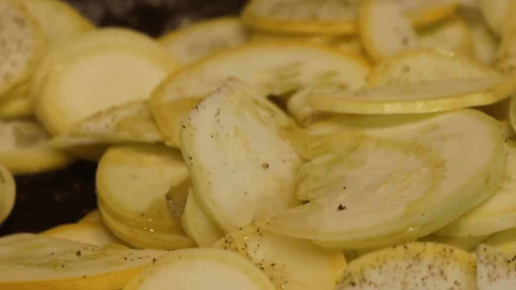 - Using a mandolin, slice the squash and onions into somewhat thin slices. Keep them in separate bowls and set them aside.