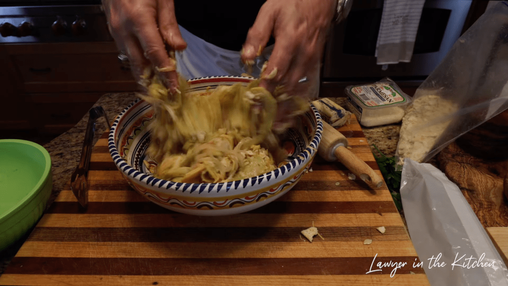 - Add the mozzarella cheese, shredded cheddar cheese, sour cream, chopped parsley, and garlic powder. Mix everything together.