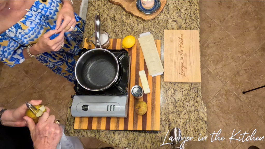 - cut the pear into thick slices/chunks and stir into the mixture, cooking for about 25 minutes on enough heat to soften the pears