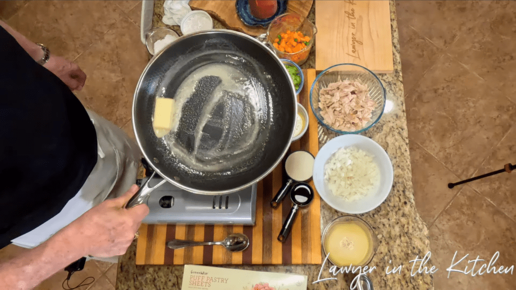 - put 4 tbsp of butter into a pan on medium heat and melt