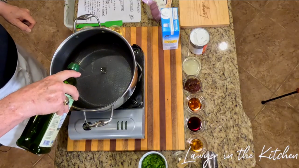 - pour olive oil into a sauce pot on the stove and put it on medium