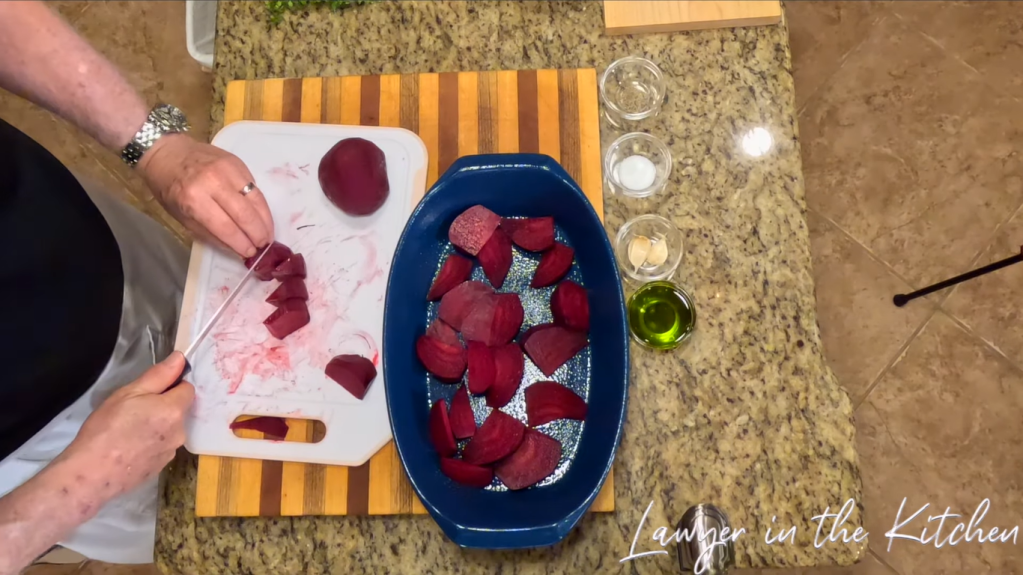 - slice the beets and put them into a casserole dish